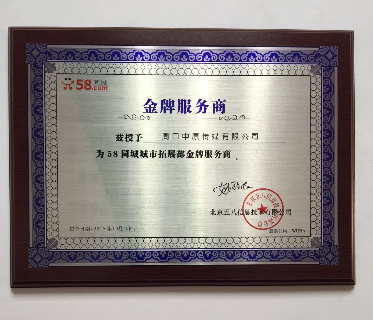 熱烈祝賀58同城周口站榮升58同城金牌服務(wù)商58同城—周口中原傳媒有限公司作為58同城在周口地區(qū)唯一的授權(quán)服務(wù)商,擁有出色的銷售團(tuán)隊(duì),銷售業(yè)績(jī)屢創(chuàng)新高。