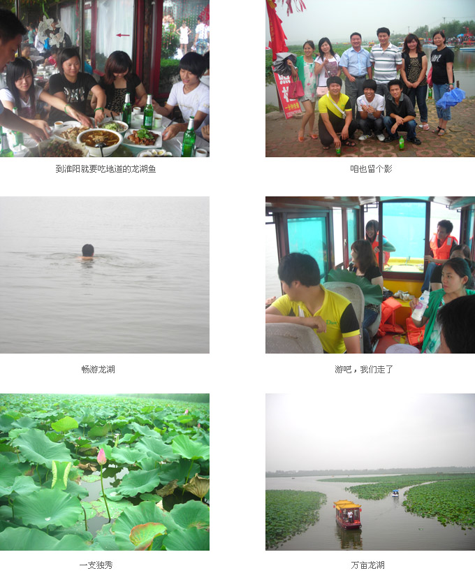 公司網銷部暢游荷花節(jié) 文章來源:周口中原傳媒有限公司     瀏覽次數(shù):1527次     發(fā)布日期:2011.05.06 “龍湖荷花別樣紅,競相怒放待君來”。為期一個月的“2011淮陽第五屆荷花節(jié)”開幕。為了緩解工作的疲勞,領略萬畝龍湖那獨特的荷香蓮韻,感受厚重文化與秀美風光,中原傳媒網銷部組織游玩荷花節(jié)。