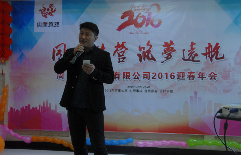中原傳媒大掌門廖總致辭,感謝中原傳媒全體員工一年以來(lái)辛勤的付出,推動(dòng)了公司長(zhǎng)足的發(fā)展,廖總為大家總結(jié)2015,暢談2016,目標(biāo)堅(jiān)定,讓大家知道,跟著他走,有肉吃!領(lǐng)導(dǎo)講話飽含深情,催人奮進(jìn),我們必將強(qiáng)力助推2016年工作再上一個(gè)新臺(tái)階!
