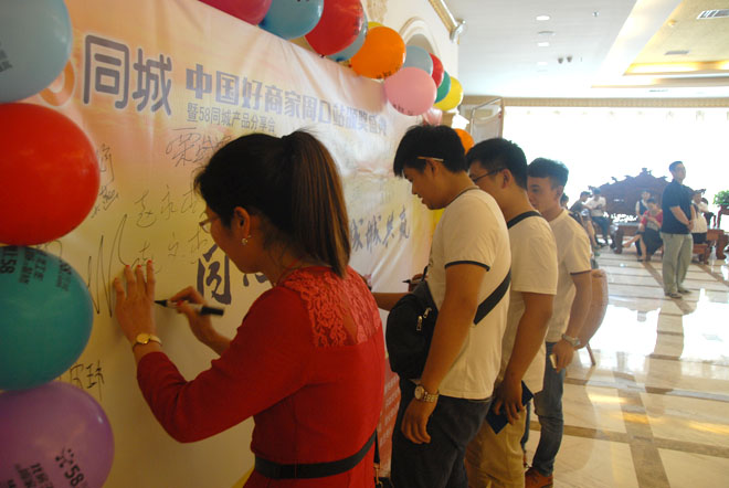 參加58同城中國(guó)好商家的貴賓簽字入場(chǎng)