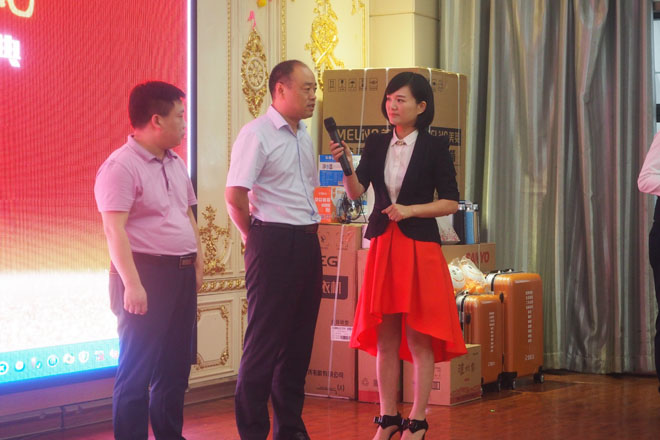 廖總在抽取一等獎(jiǎng),據(jù)說(shuō)獎(jiǎng)品很大,笑得這么開心,看來(lái)今天沒(méi)少簽單