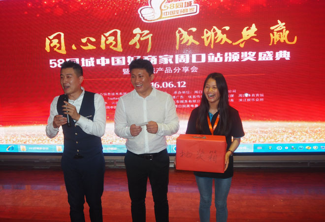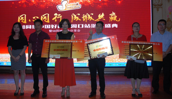 “同心同行 成城共贏”—2016年度58同城中國(guó)好商家周口站頒獎(jiǎng)盛典暨58同城產(chǎn)品分享會(huì)12日在周口體育賓館隆重召開。來(lái)自周口各地的兩百多家中小企業(yè)齊聚一堂,共享盛典,交流經(jīng)驗(yàn),展望前景,共同創(chuàng)造未來(lái)輝煌。